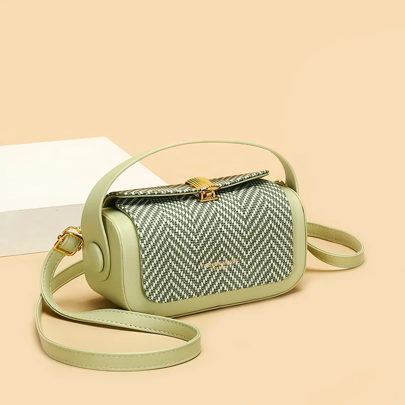 2026 New Luxury Women's Handbag Box Design Fashion Versatile Single Shoulder Crossbody Bag Light Green Black
